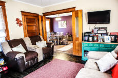 1/2 bath home with 3 bedrooms upstairs and 1 in the basement, beautiful woodwork, parlor, foyer, bay window