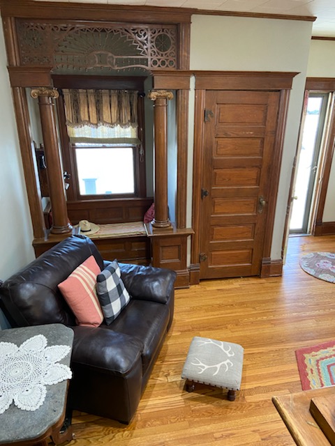A 2.5 story 4 Br, 2 Ba home w/ beautiful woodwork, wood columns, open staircase,bench seat, lead glass windows, formal dining room, Fp, walk up attic, large front porch, Screened in porch & a deck. A Must See!