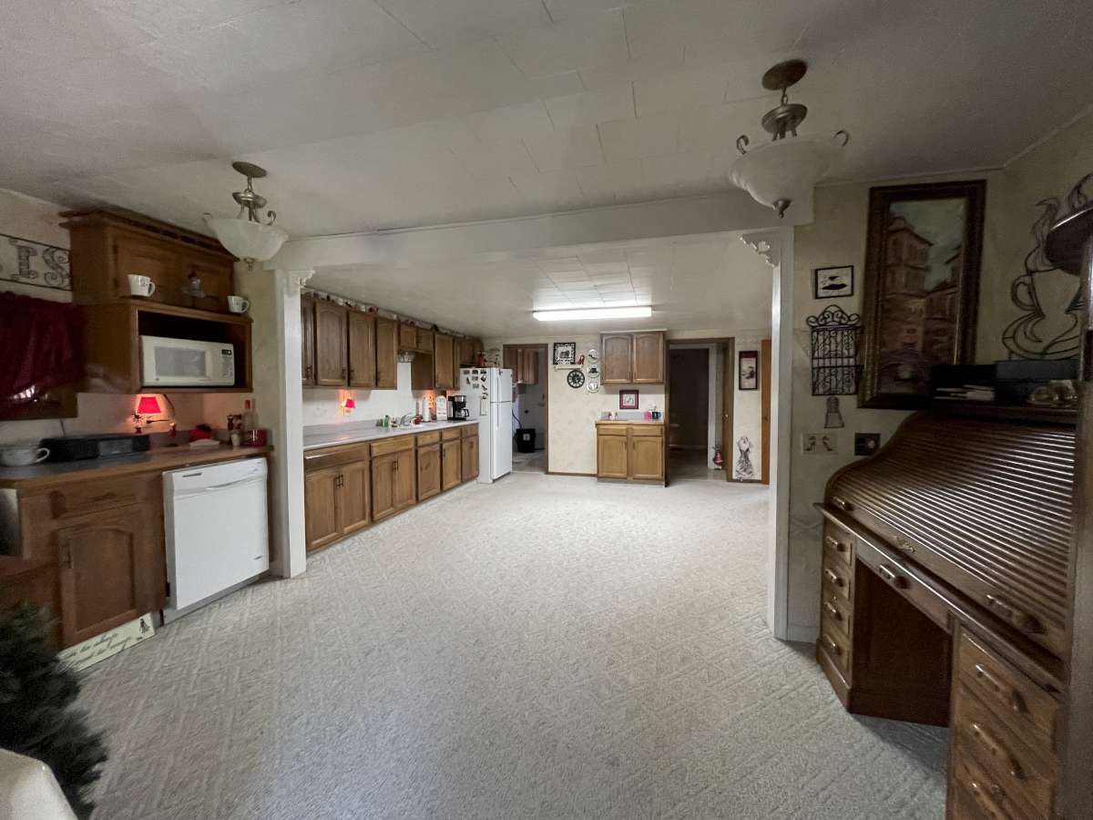 main floor of this home is a large eat in kitchen