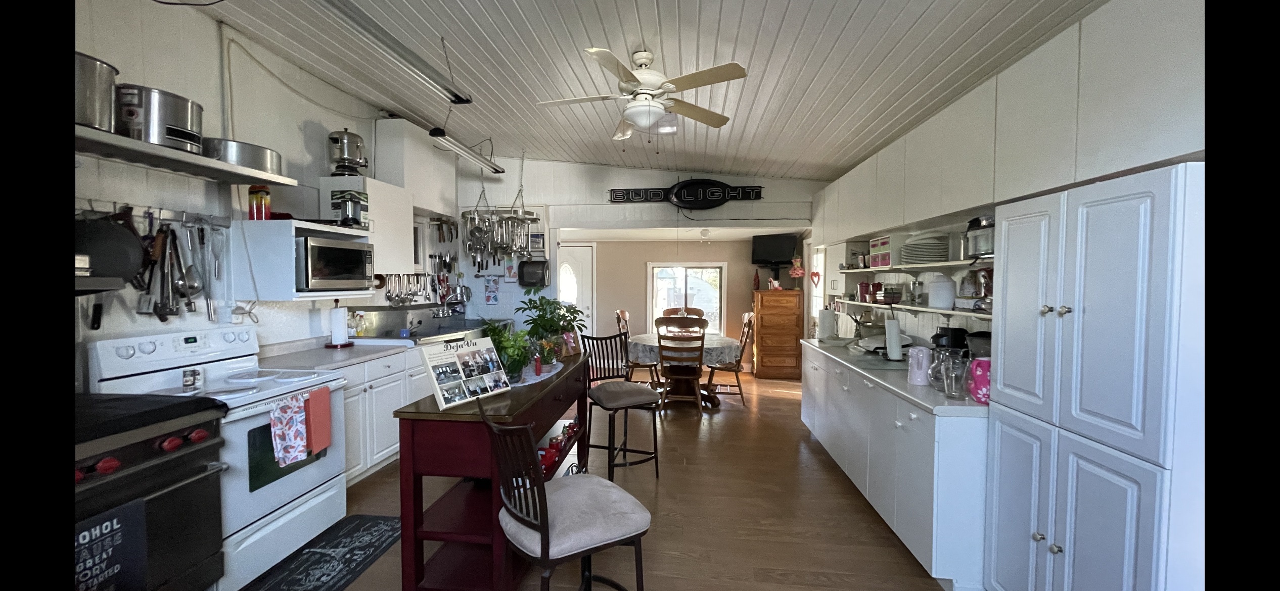 large catering kitchen w/storage pantry, bedroom
